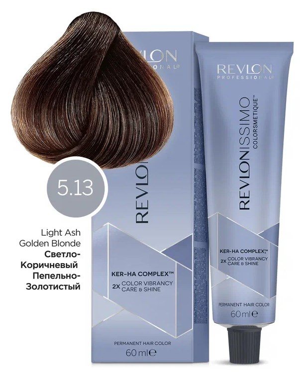 Краска для волос Revlon Professional Coloring Hair Revlonissimo Colorsmetique High CoverAge (HC) Color Shine, Стойкий перманентный краситель. Перманентный Краситель для Окрашивания Волос с высоким и Очень высоким Процентом Седины, HC5.13