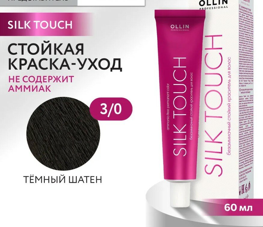 Купить Ollin Silk Touch - Оллин Силк Тач Стойкая краска для волос без аммиака, 60 мл - Оллин Силк Тач 3/0 Темный шатен