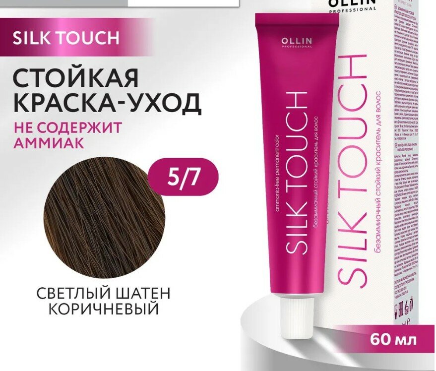 OLLIN Professional Silk Touch стойкий краситель для волос безаммиачный, 5/7 светлый шатен коричневый, 60 мл