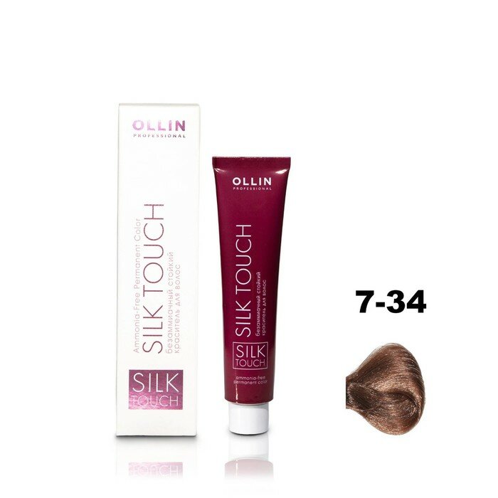 Купить OLLIN Professional Silk Touch стойкий краситель для волос безаммиачный, 7/34 русый золотисто-медный, 60 мл