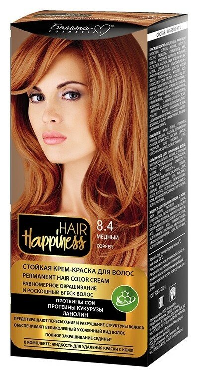 Крем-краска Белита-М Hair Happiness стойкая для волос аммиачная, тон 8.4 Медный