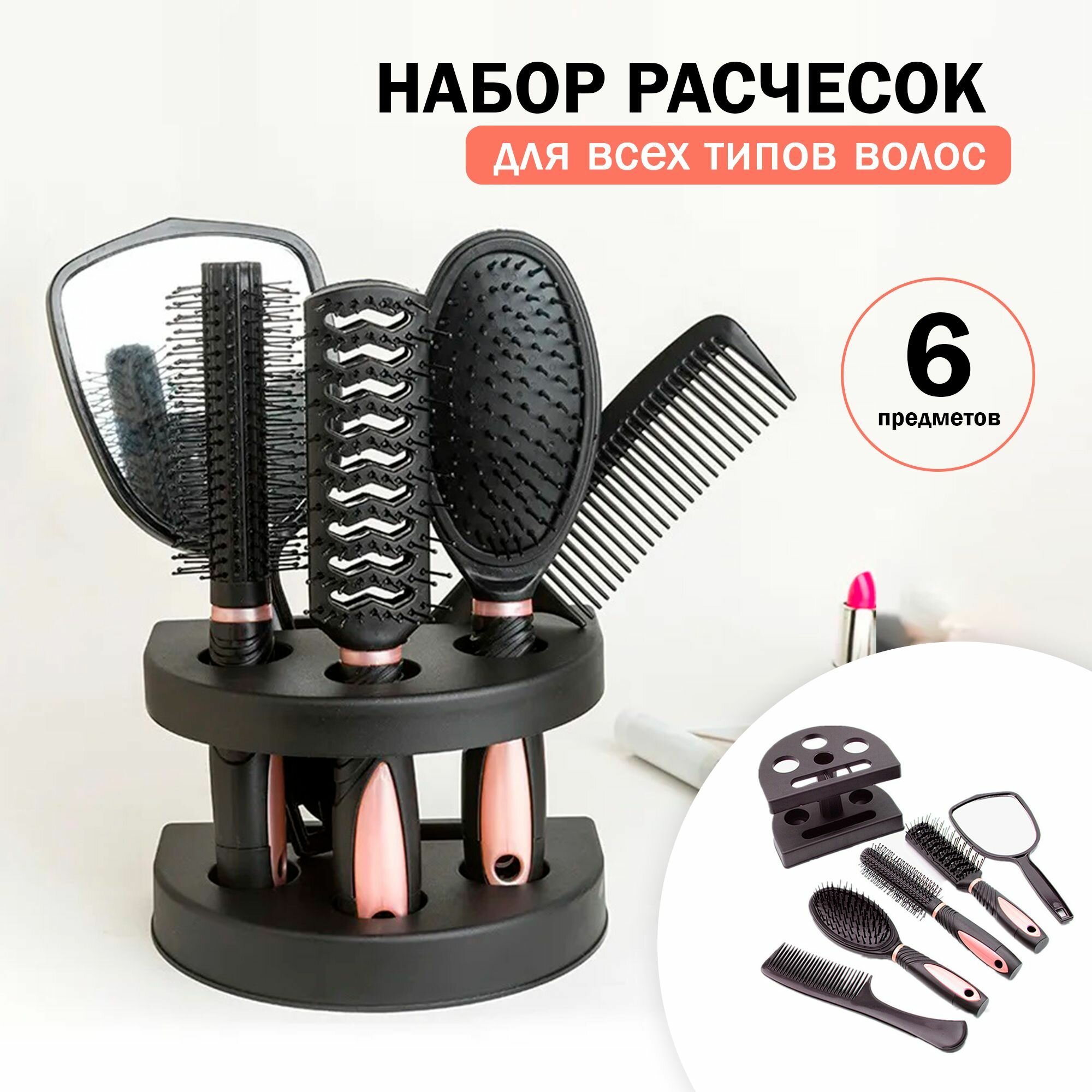 Купить Набор расчесок для волос Светло-розовый: массажная распутывающая, брашинг, гребень, вентилируемая для укладки феном, зеркало