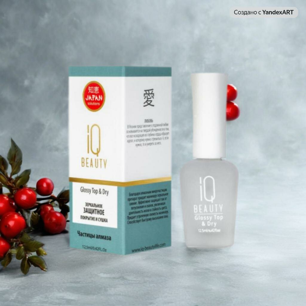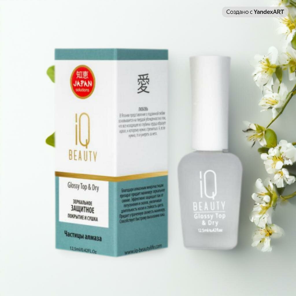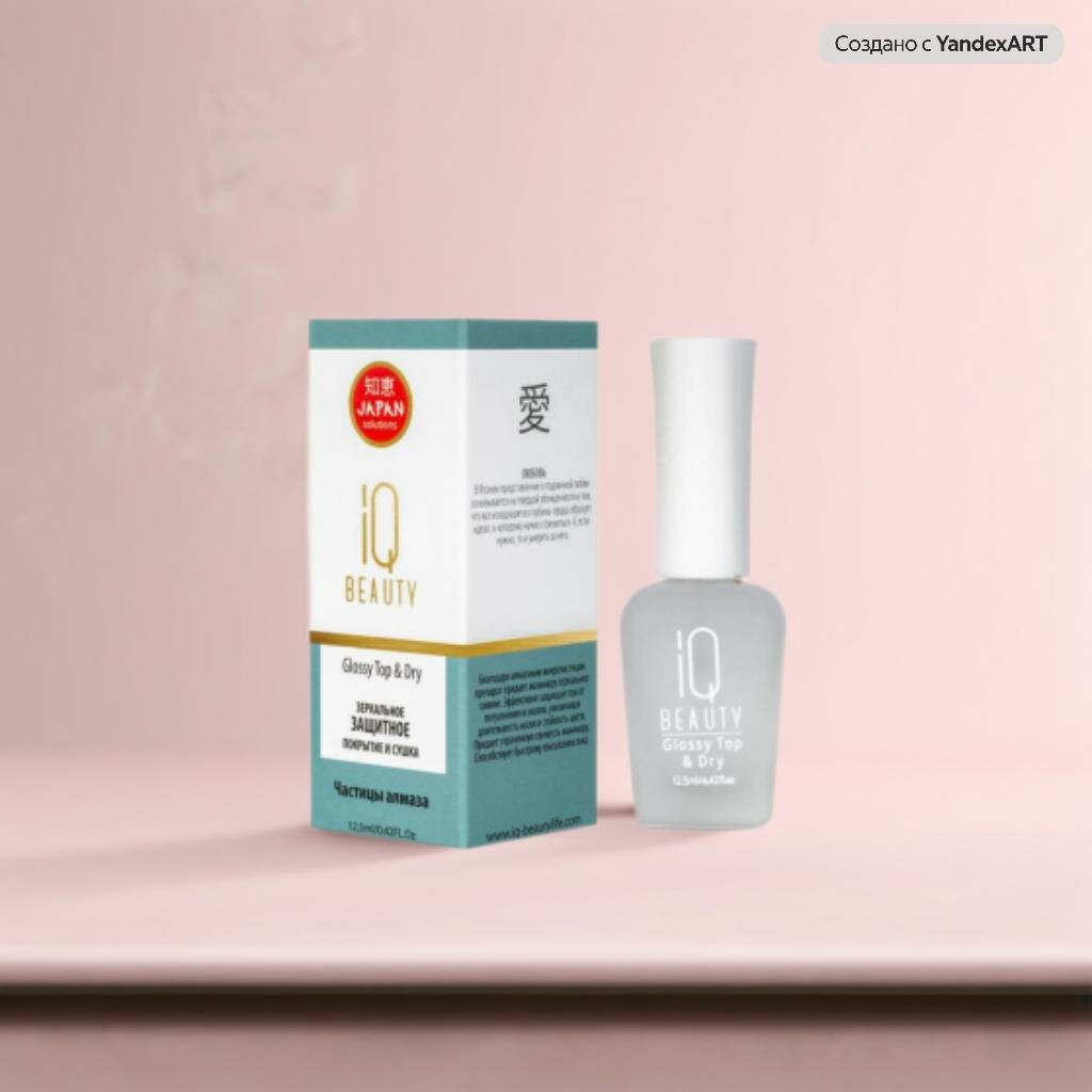 | Дополнительная информация | Зеркальное защитное покрытие и сушка iQ BEAUTY GLOSSY TOP DRY - это профессиональное средство для маникюра, которое обеспечивает зеркальное сияние и защиту лака от потускнения и сколов. Благодаря алмазным микрочастицам, маникюр приобретает утраченную свежесть и стойкость цвета, а также быстро высыхает. |