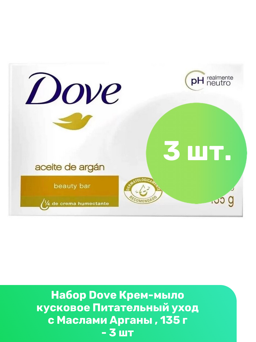 Dove Крем-мыло кусковое Питательный уход с Маслами Арганы , 135 г - 3 шт