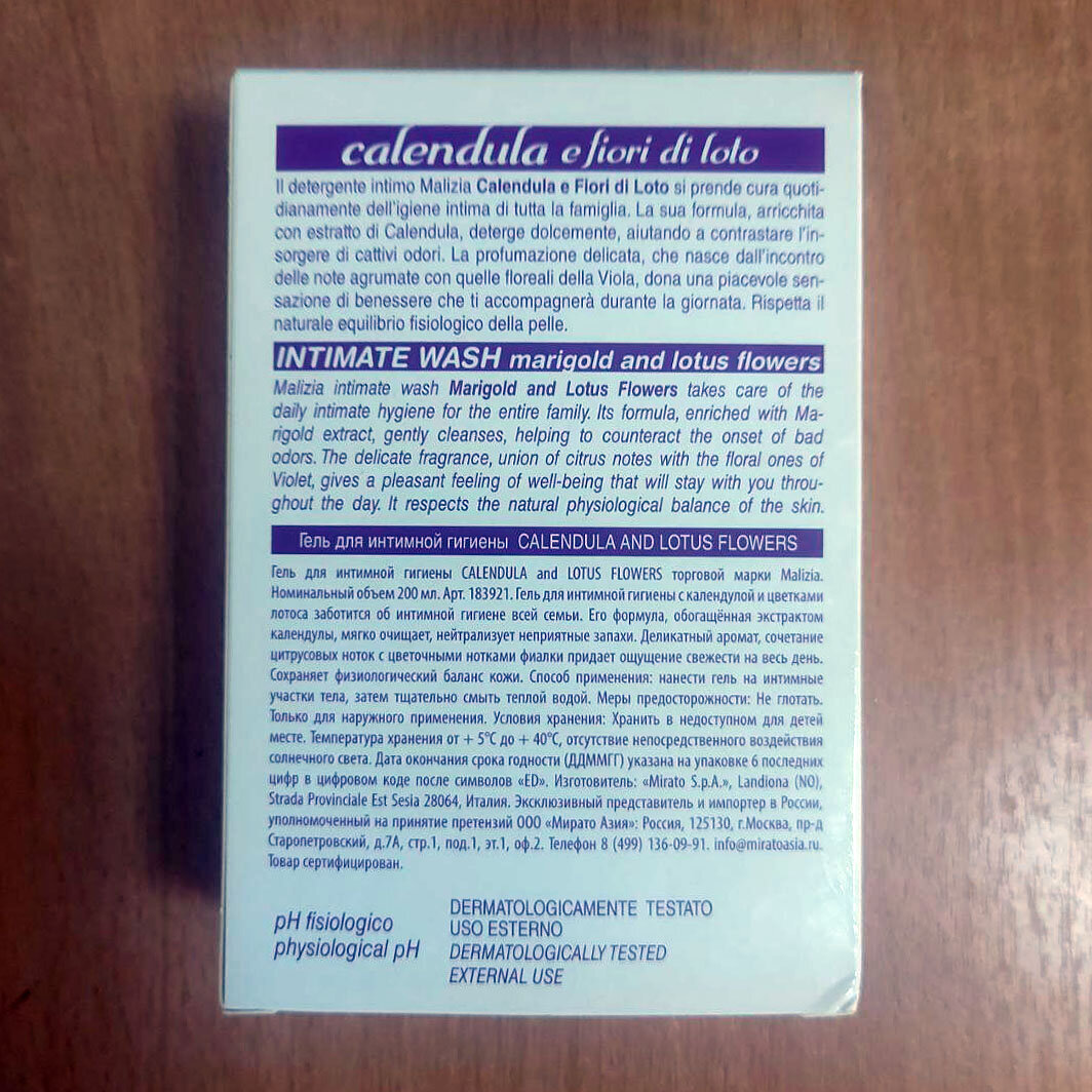 Гель для интимной гигиены Malizia Calendula Aloe 200 мл интересное: