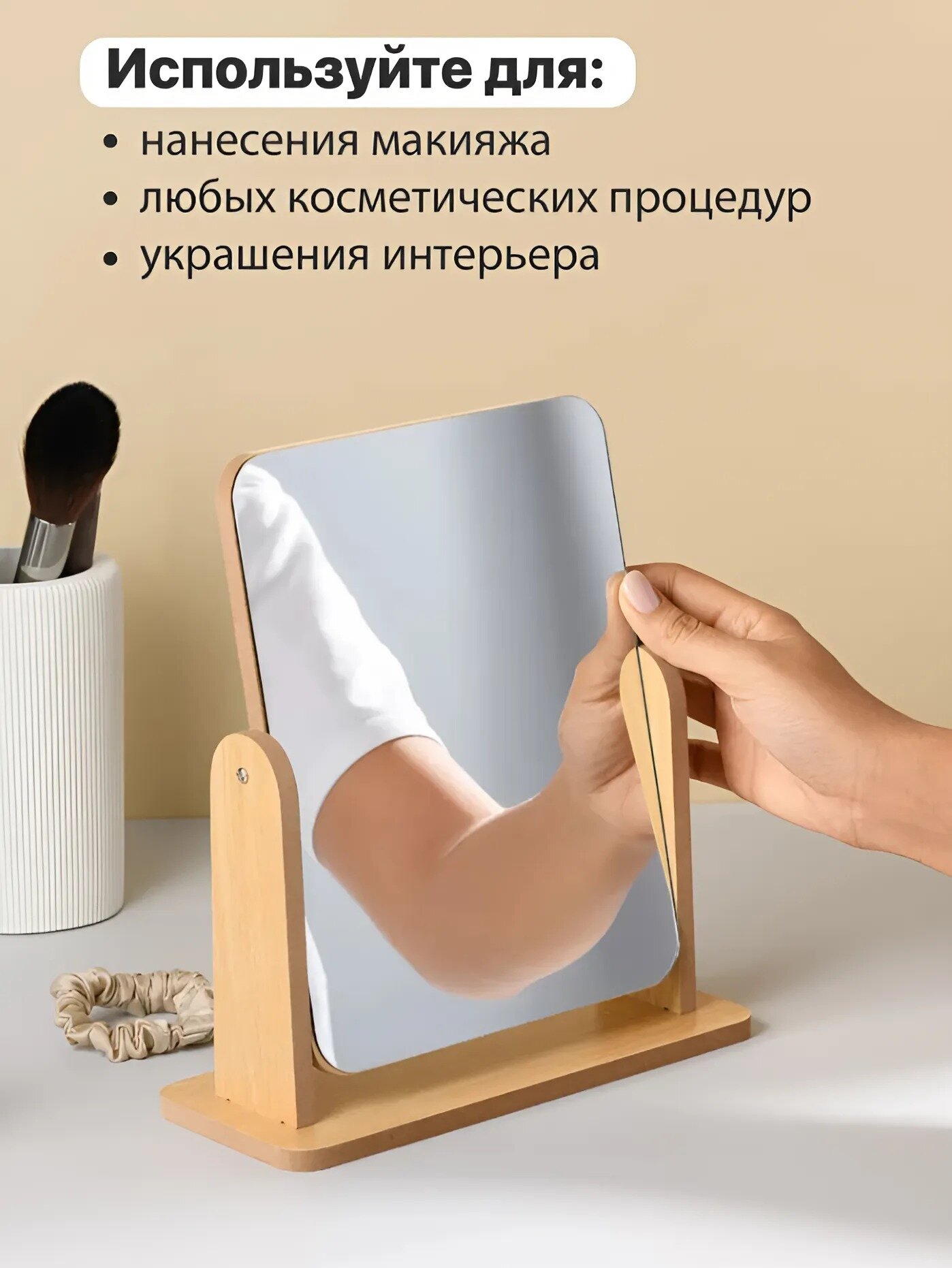 Зеркало настольное, зеркальная поверхность 17 х 22 см, цвет бежевый интересное: