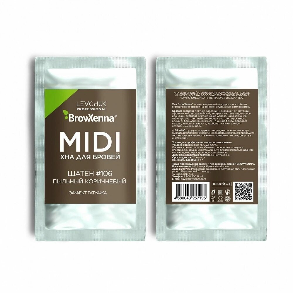 Купить BrowXenna Хна для бровей midi-саше 3 гр, 106 пыльный коричневый, 3 г