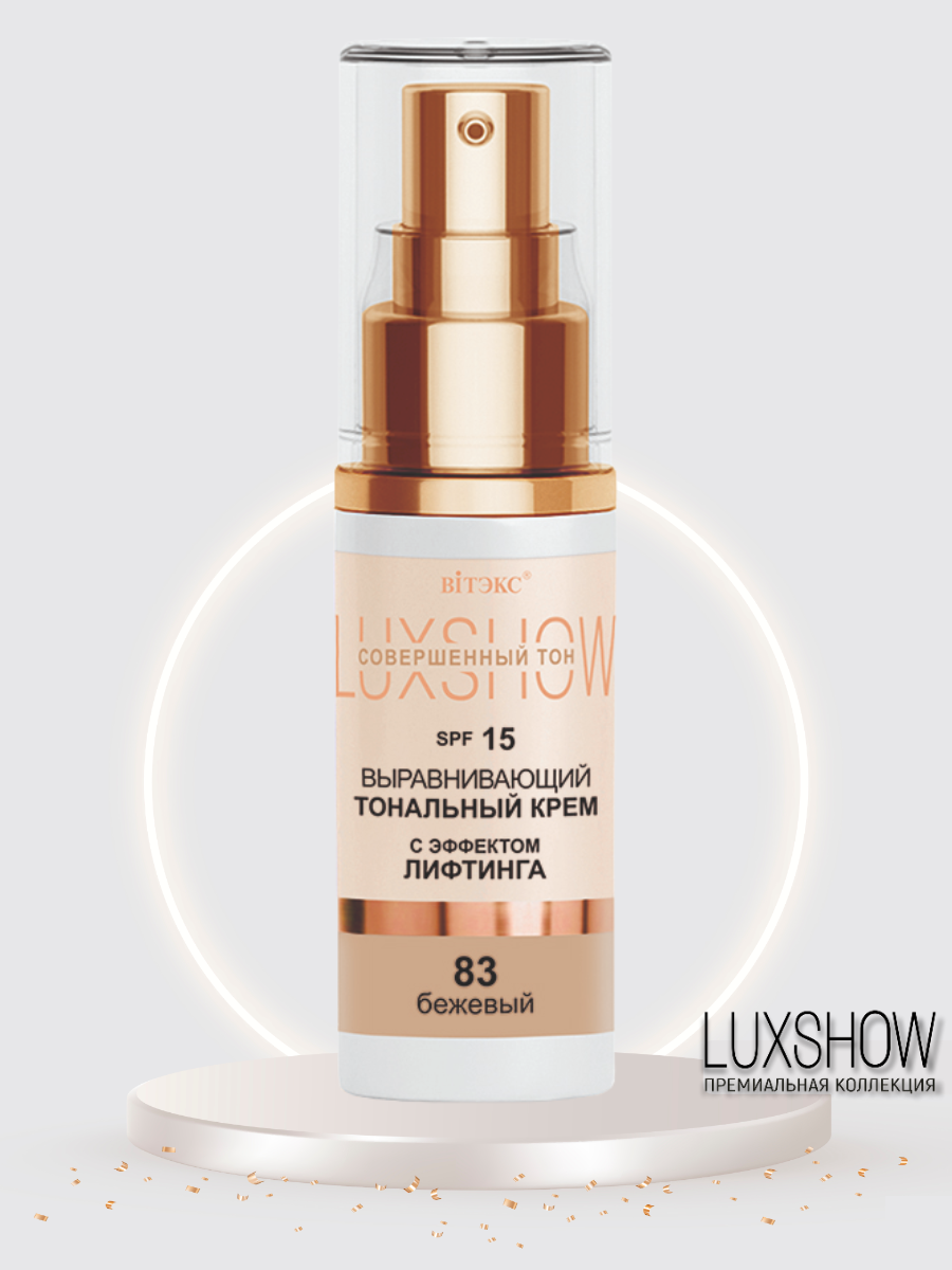 Купить Тональный крем с эффектом лифтинга выравнивающий SPF 15 LUXSHOW тон 83 бежевый 30 мл. Витэкс
