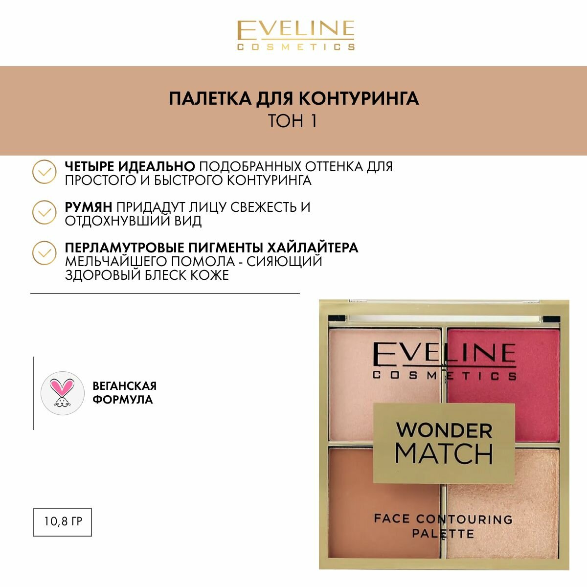 Палетка для контуринга EVELINE WONDER MATCH тон 1 (бронзер, румяна, хайлайтер)