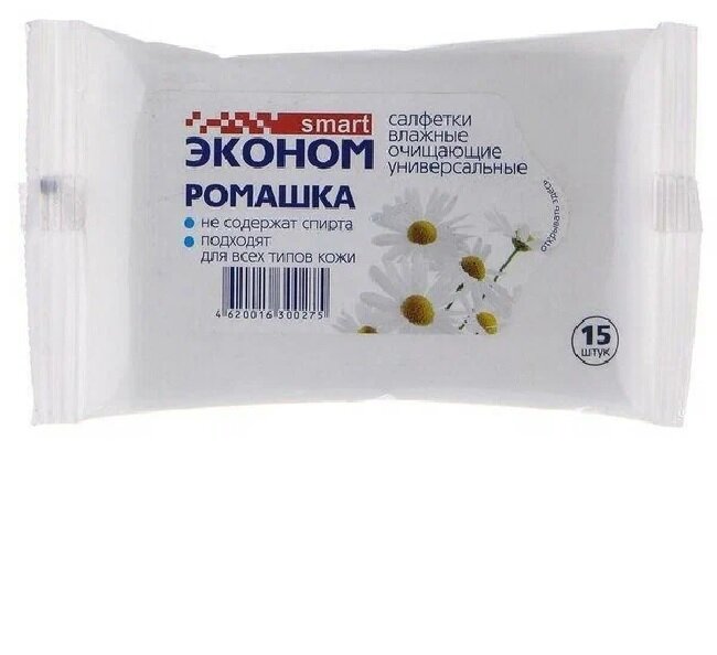 Салфетки влажные Эконом smart 15шт. Ромашка интересное: