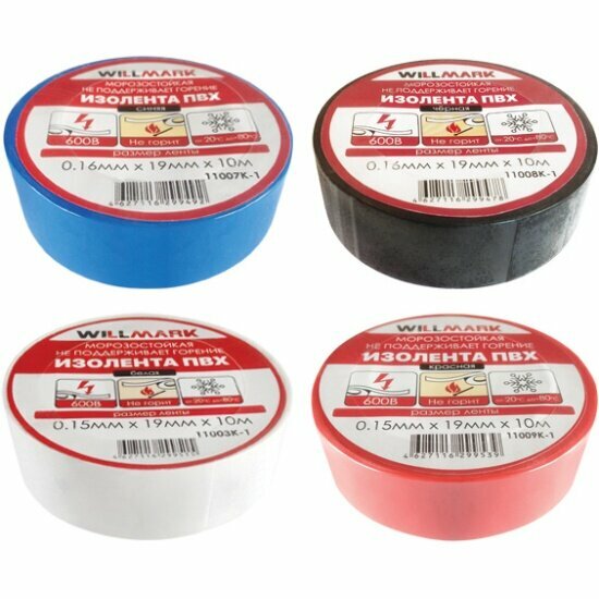 Ниже Вы можете прочитать отзывы на Изолента ПВХ самозатухающая WILLMARK 19 мм х 0,15 мм х 10 м ( белая ) 11013, ознакомится с подробными характеристиками, посмотреть интересные обзоры и фотографии на Изолента ПВХ самозатухающая WILLMARK 19 мм х 0,15 мм х 10 м ( белая ) 11013.