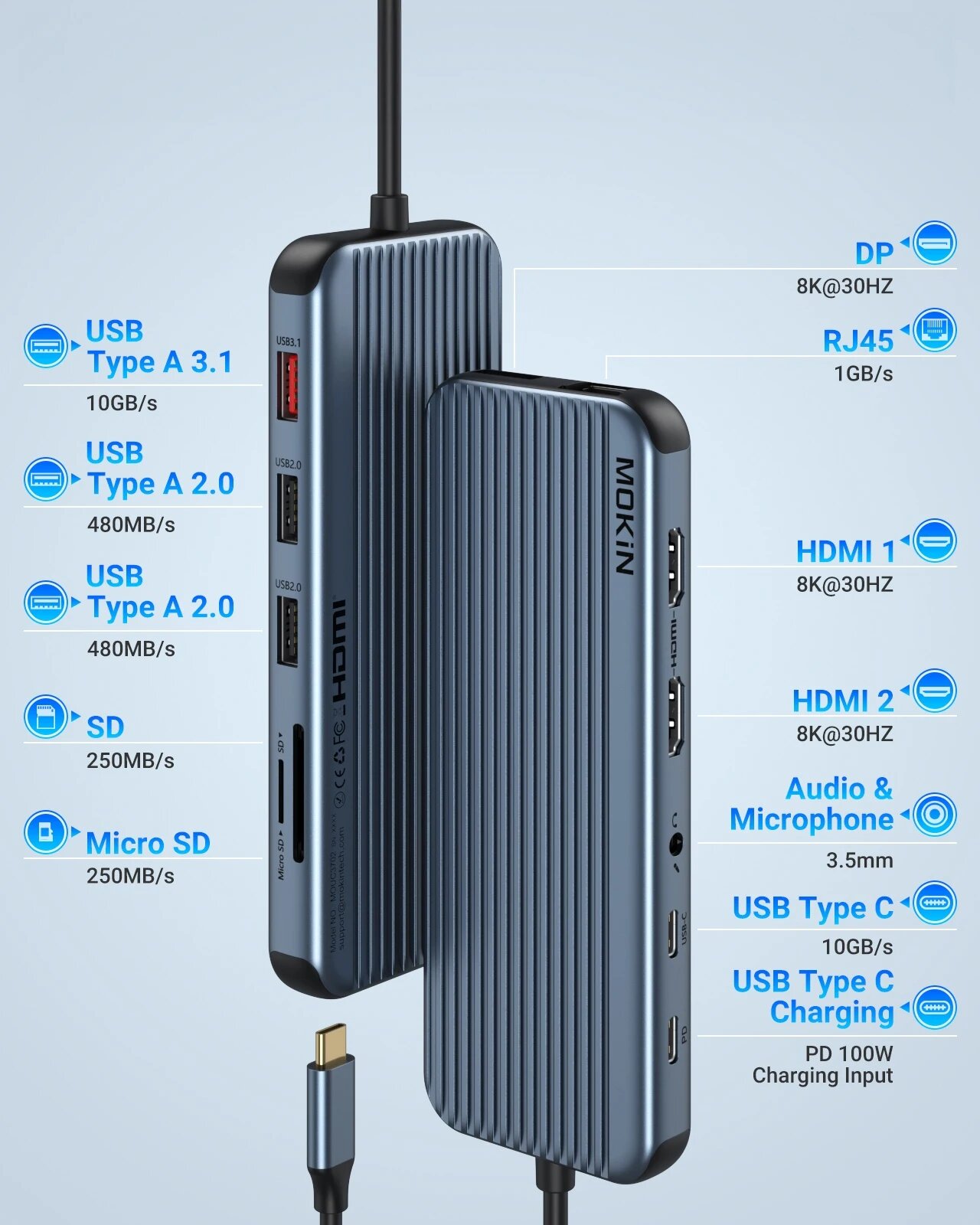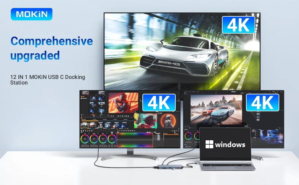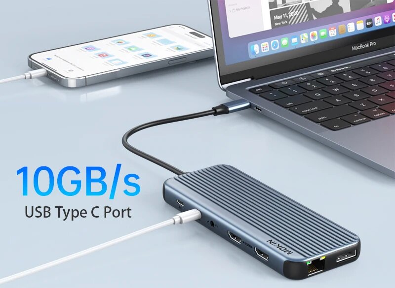 Док-станция MOKiN 12 в 1 для MacBook Air/Pro, iPad, ноутбука Thunderbolt - USB3.1, HDMI 4K60 Гц, PD 100 Вт, RJ45 1 Гбит/с, аудио, 12 in 1 интересное: