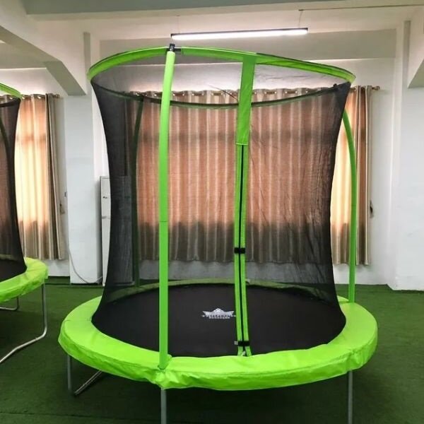 Батут крепкий, основательный, безопасный, с высокой сеткой. |