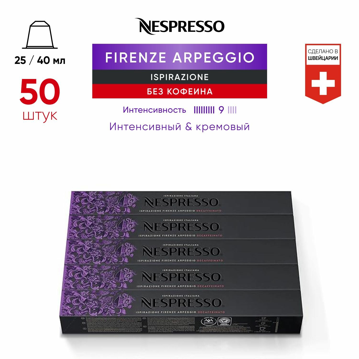 Купить Firenze Arpeggio Decaffeinato - кофе в капсулах Nespresso Original, 5 упаковок (50 капсул)