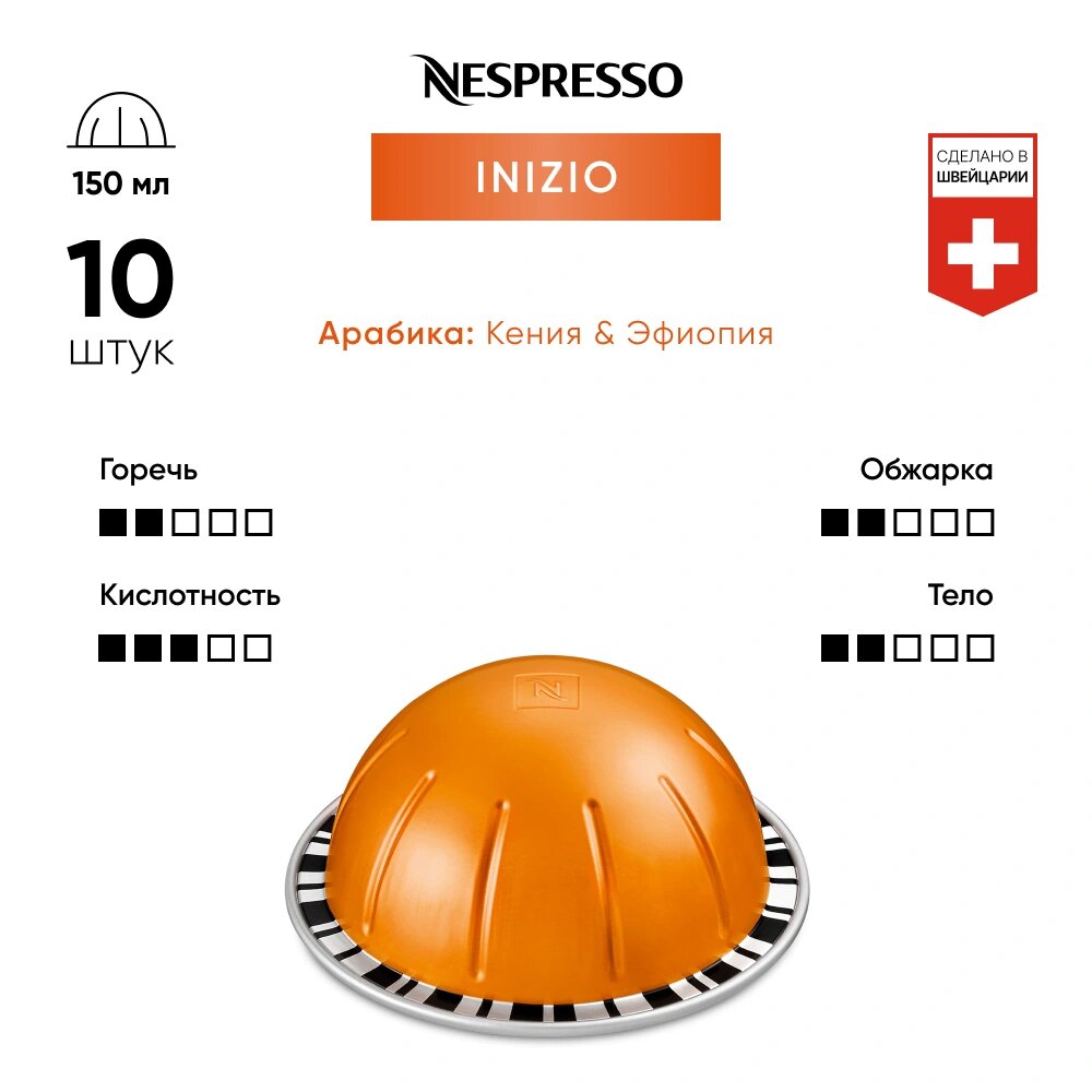 Кофе в капсулах Nespresso Vertuo INIZIO, 10 шт. система Nespresso Vertuo (объём 150 мл.)
