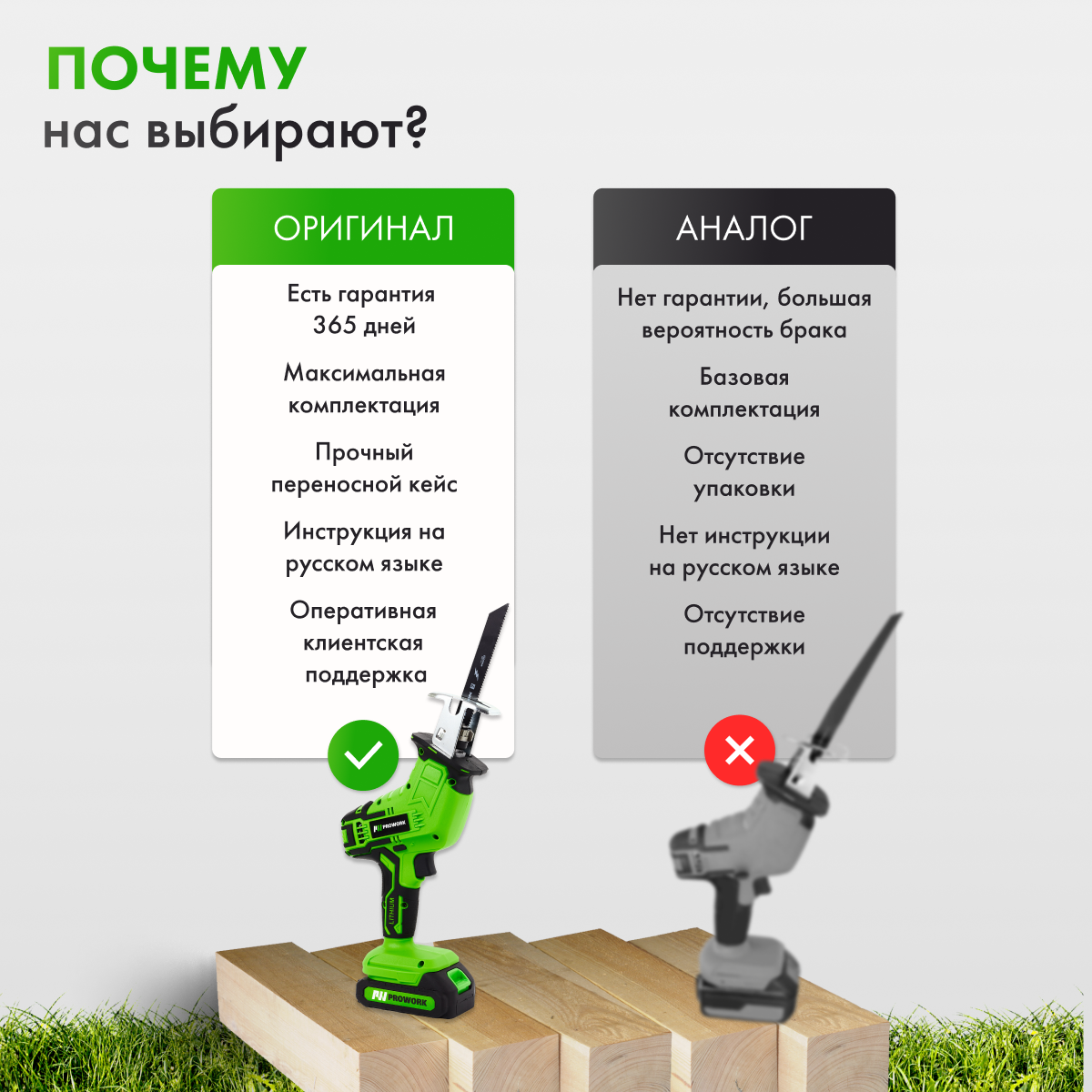 Сабельная пила аккумуляторная "Prowork" с антивибрацией интересное:
