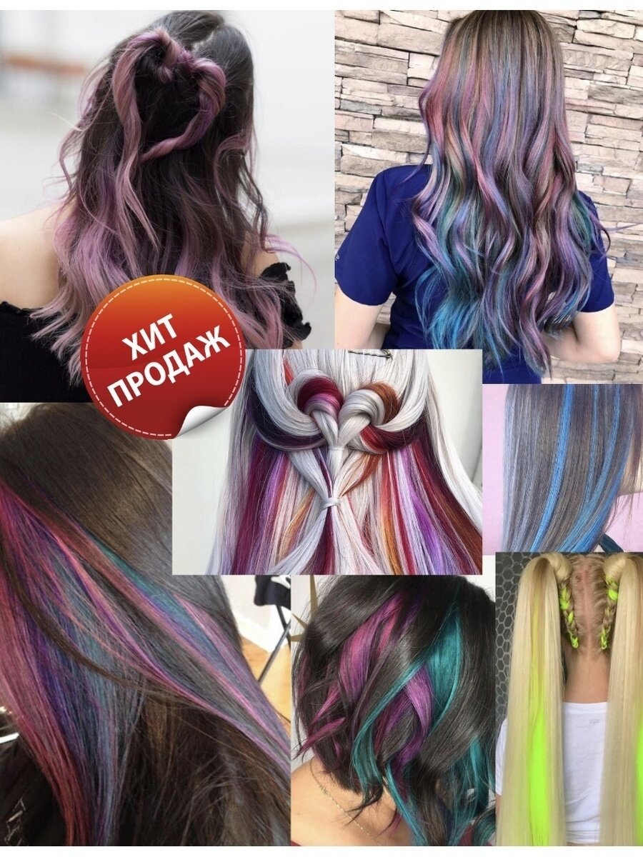 Цветные пряди волос на заколках, 12 штук, разноцветные