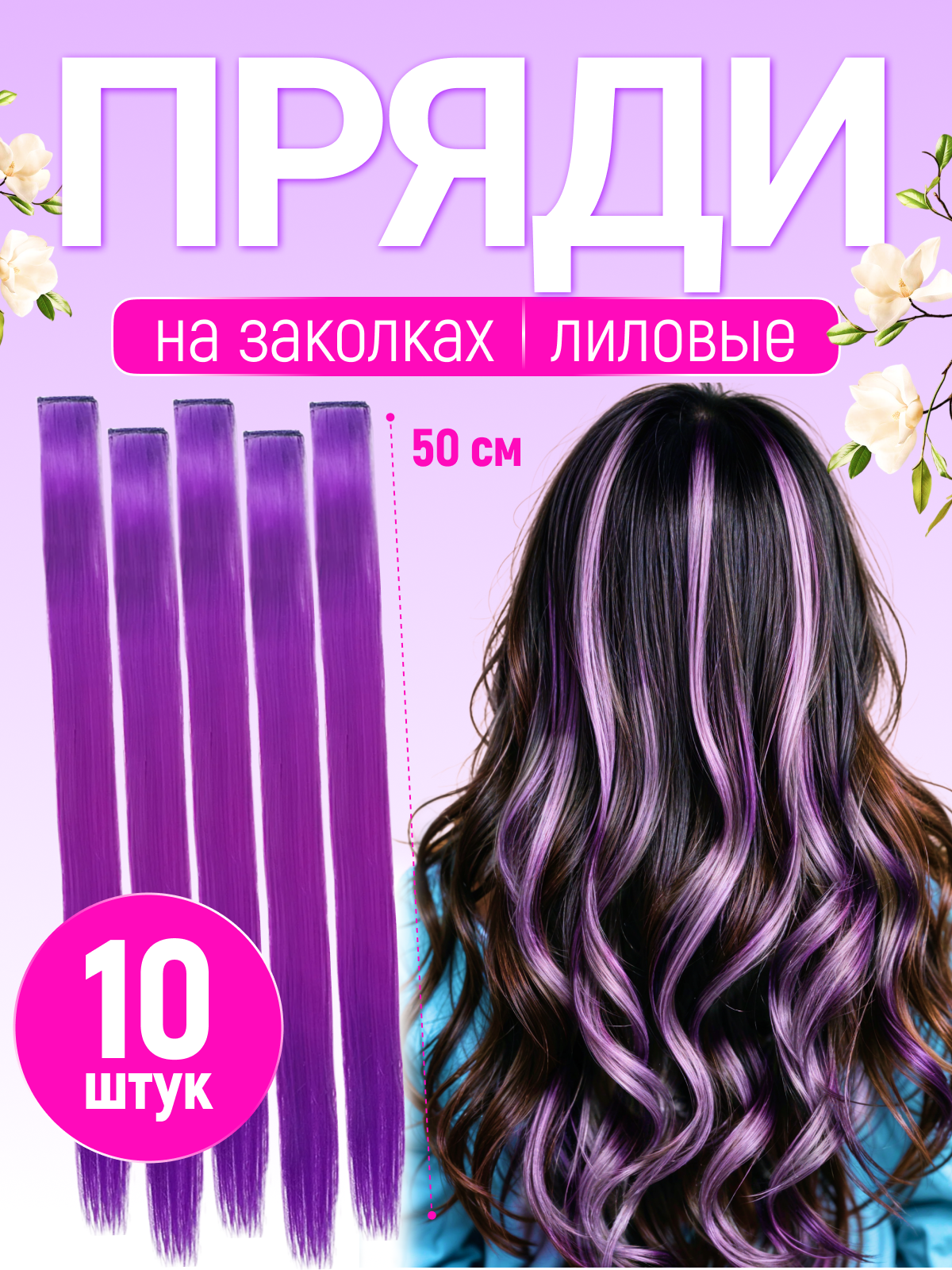 Купить Цветные пряди на заколках 10 штук (фиолетовые)