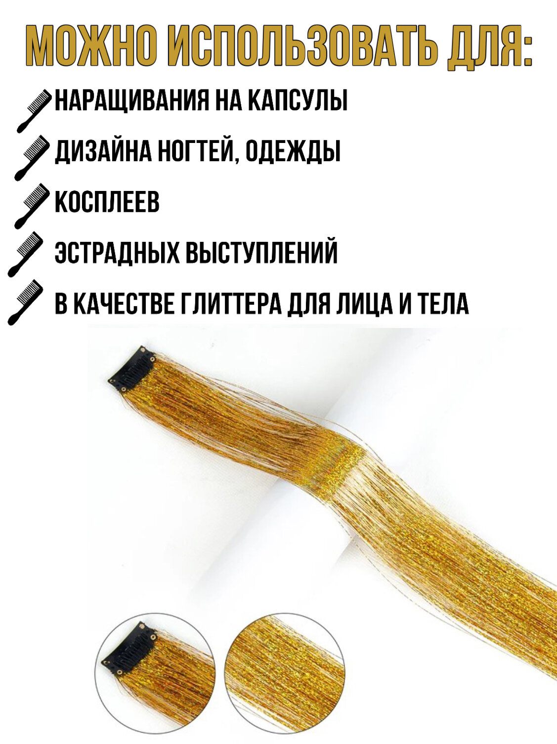 Купить Блестящие пряди на заколках 6 штук (золотые)