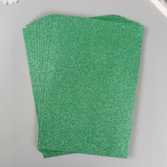 Купить Фоамиран с глиттером, зеленый (H005), 2мм, 20*30см, 1шт