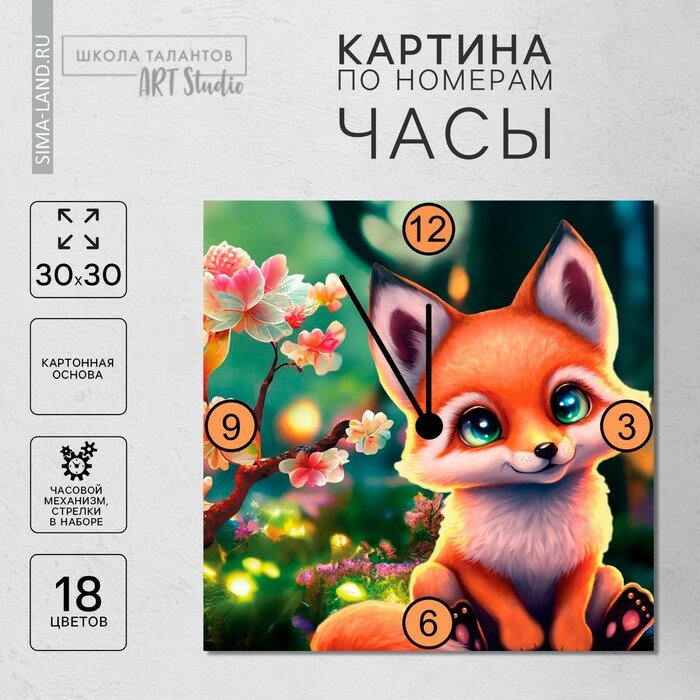 Купить Роспись часов по номерам Лисичка в лесу, модель часов 168, 30 ? 30 см Школа талантов 9827429 .