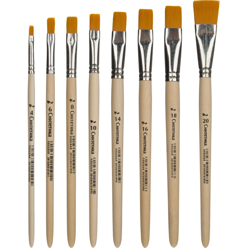 Набор кистей синтетика плоские 5 штук (№2,4,6,8,10), в блистере 7711371