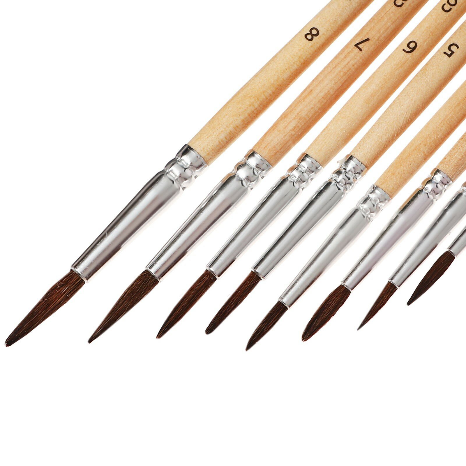 Купить Набор кистей круглых №1,2,3,4,5,6,7,8 для рисования красками, кисточки из натурального ворса белки с деревянными ручками, канцелярия для школы и творчества, 8 штук