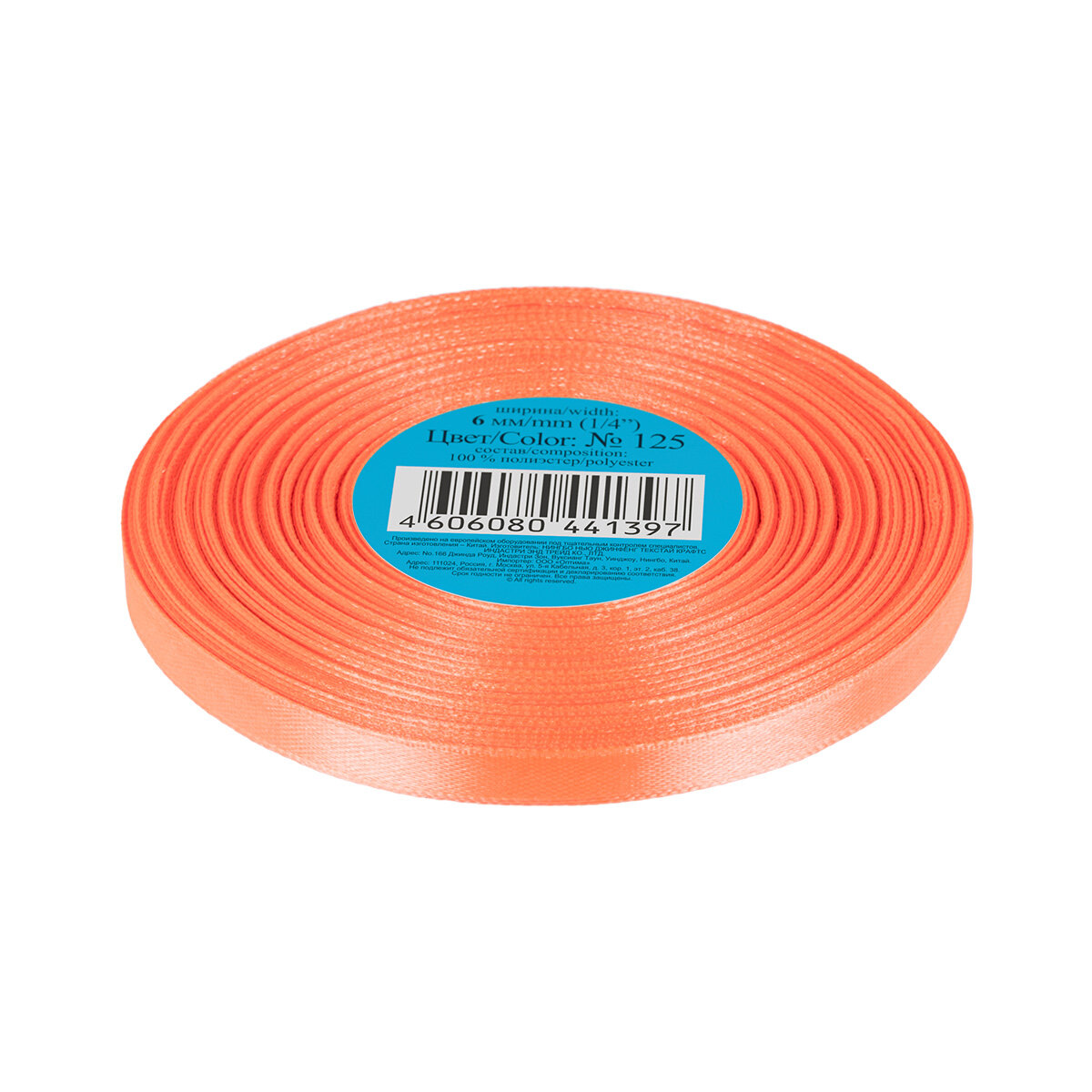 Лента атласная однотонная Gamma 6мм, метражом, 125, красно-оранжевый, 100%полиэстер, 1м