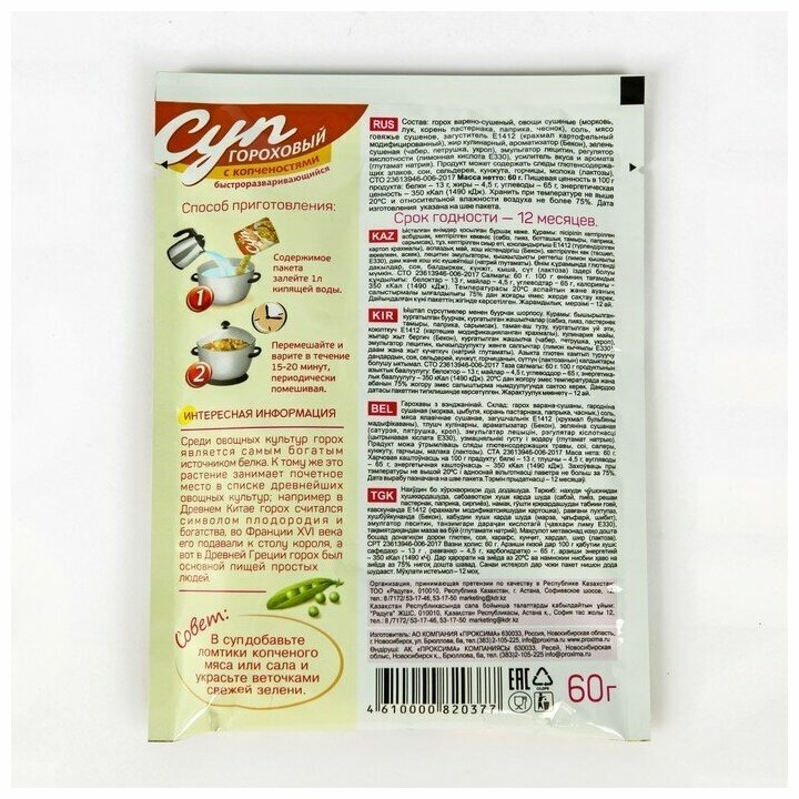 Суп быстрого приготовления Гороховый с копченостями "Приправыч" 60гр. 3 порции 1 шт.