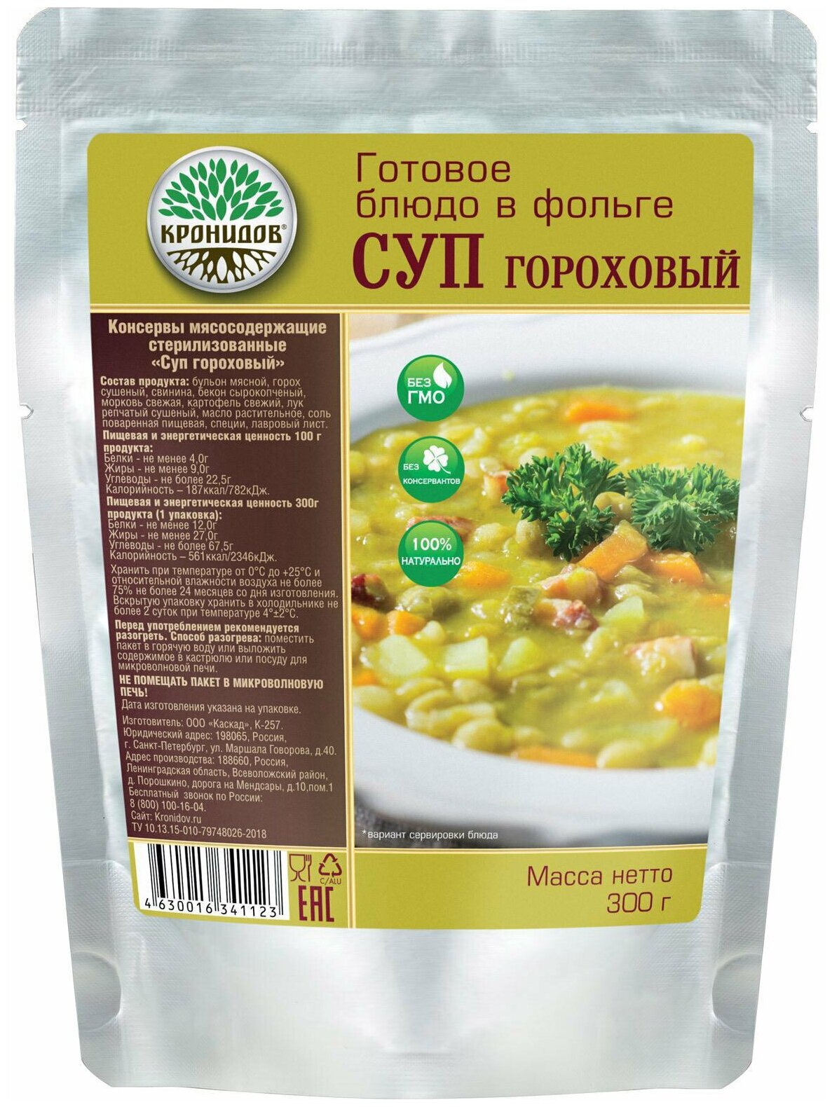 Туристическое питание Кронидов Гороховый суп 300 гр. интересное: