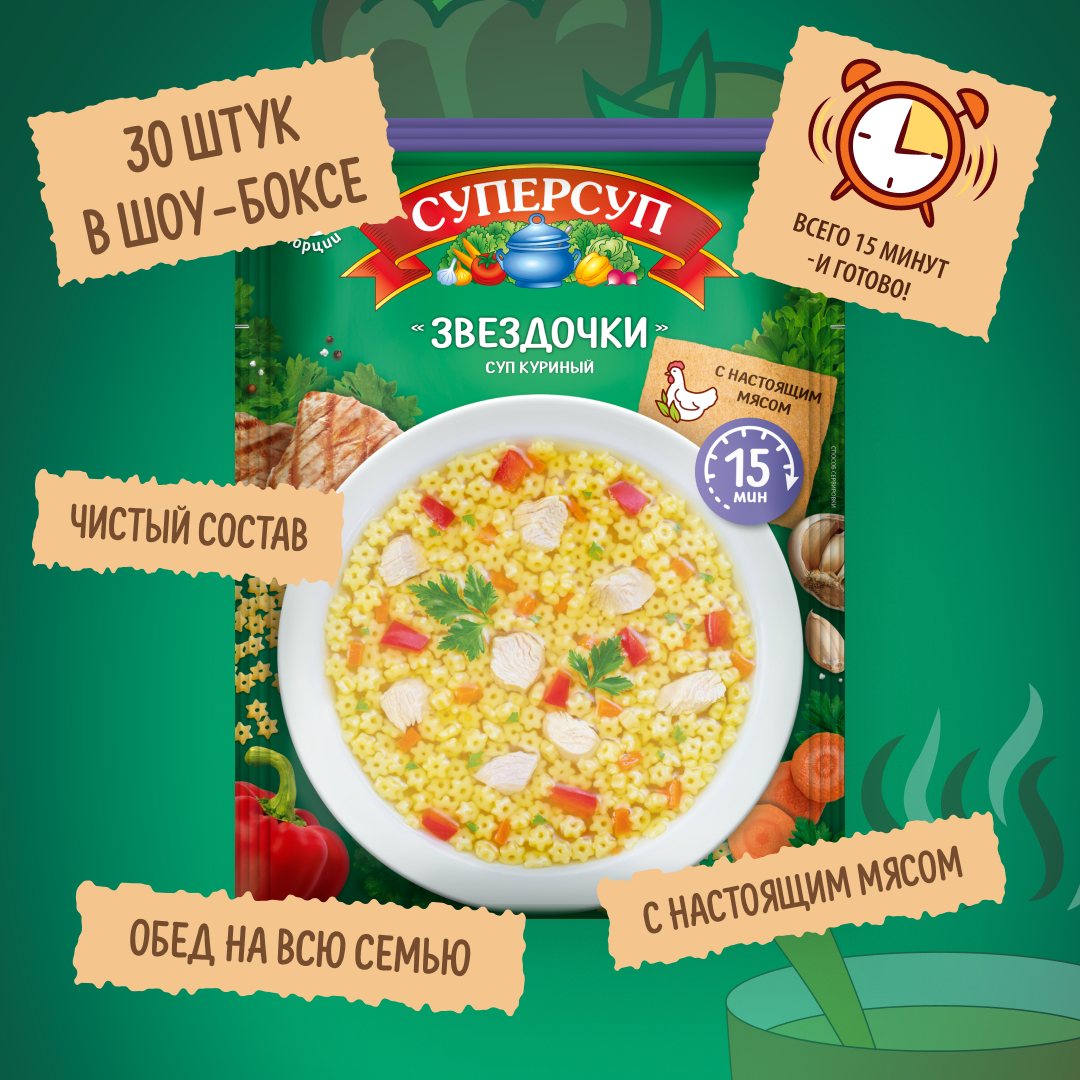Суп Куриный "Звездочки" 70 гр х 30 шт, Суперсуп интересное:
