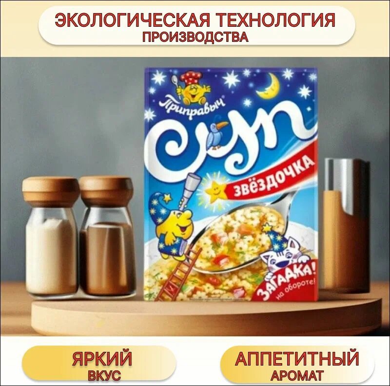 Суп быстрого приготовления Звездочка "Приправыч" 60 гр, 1 шт. 3 порции
