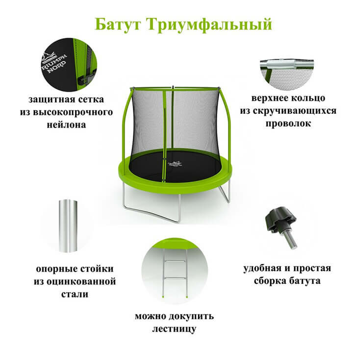 СохранитьTriumph Nord Батут Triumph Nord Триумфальный 183 см с защитной сеткой (80101) зелёный интересное: