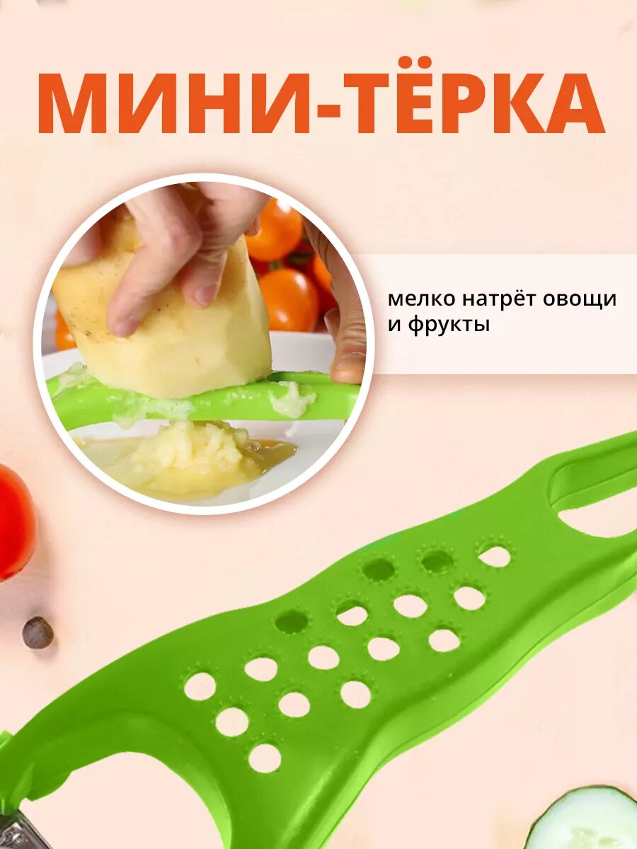 Овощечистка ручная, универсальный нож для чистки, нарезки овощей 5в1, цвет зеленый интересное: