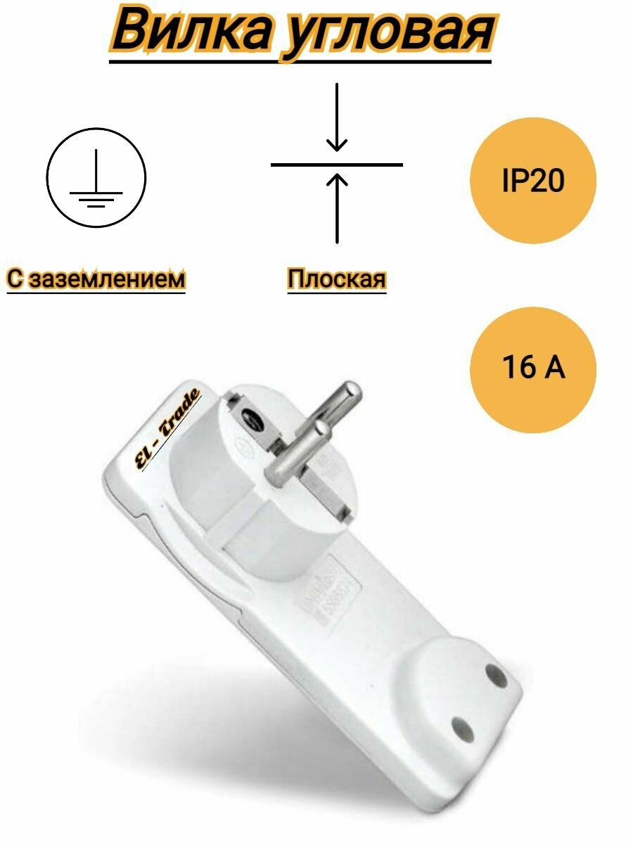 Вилка электрическая угловая плоская (16А, 250В, белая, комплект из 2 штук)