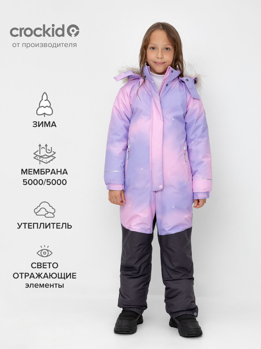 Комбинезон зимний мембранный для девочки, Crockid ВК 60123/н/1 ГР (122-158) р 128-134/68/63