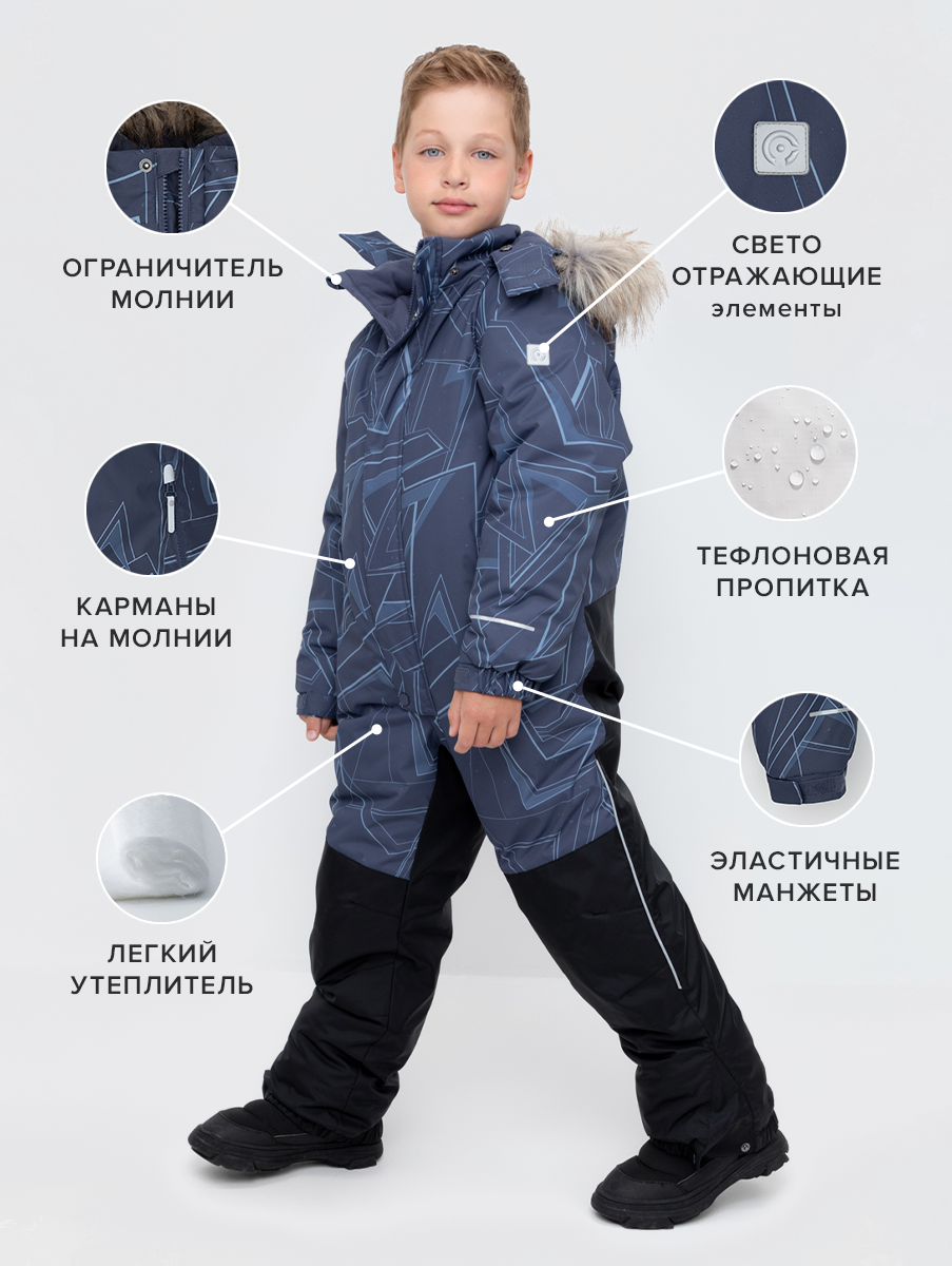 Комбинезон зимний мембранный для мальчика, Crockid ВК 60120/н/10 ГР р 128-134/68/63