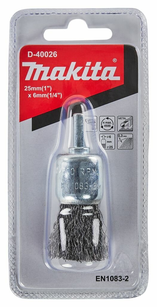 Купить Щетка кистевая d25мм проволока 0.3мм гофрированная, металл, хвостовик 6мм Makita D-40026