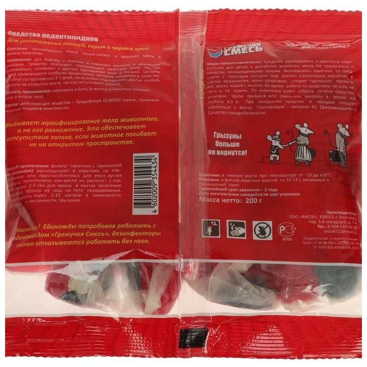 Приманка для уничтожения мышей и крыс Гремучая смесь, микс тесто-брикеты, 3 шт. * 200 г