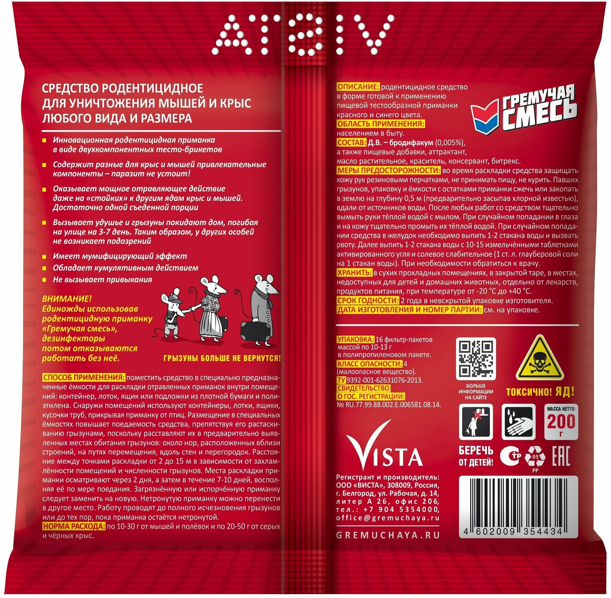 Приманка Гремучая смесь от крыс и мышей 500 г тесто-брикеты Vista