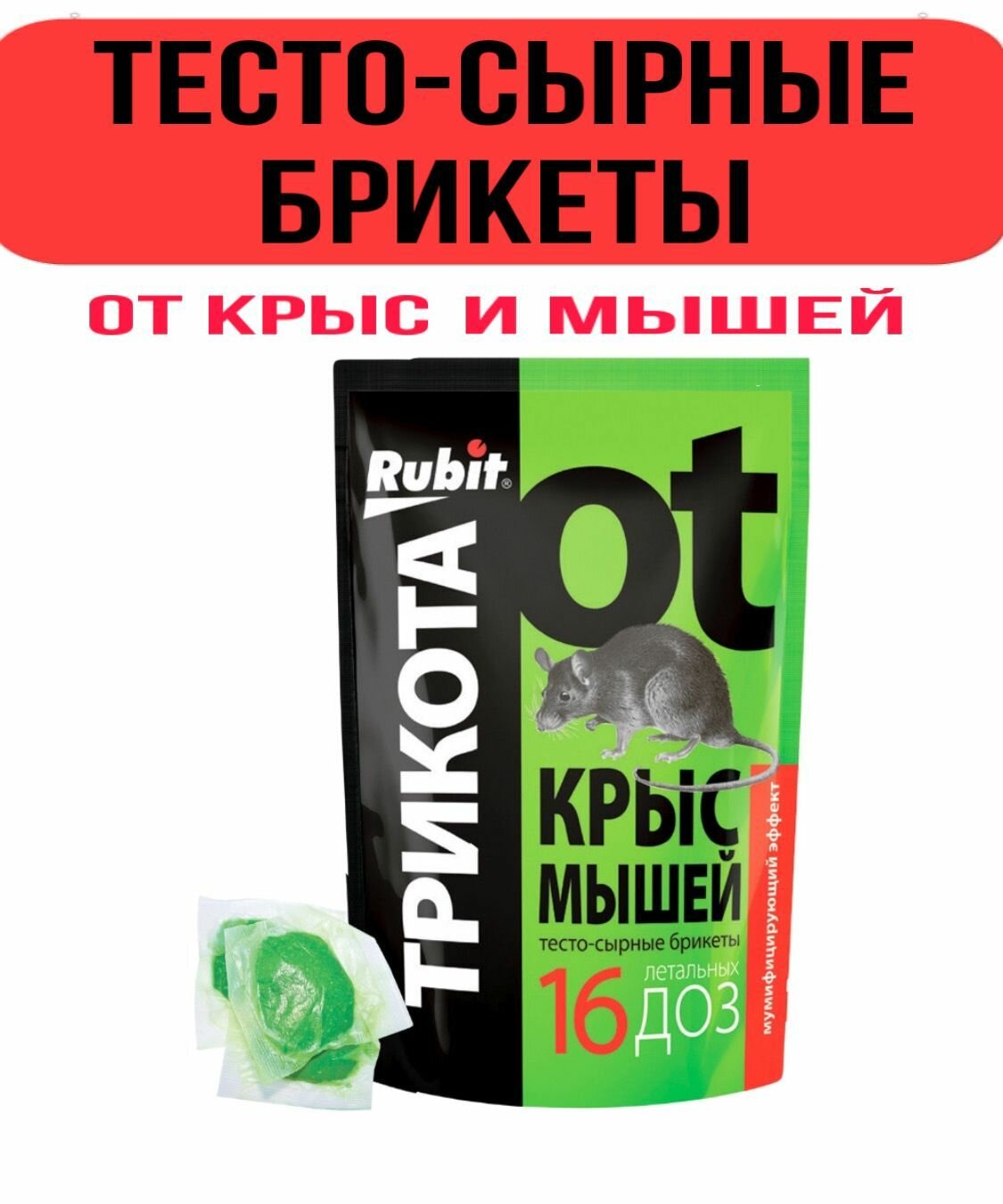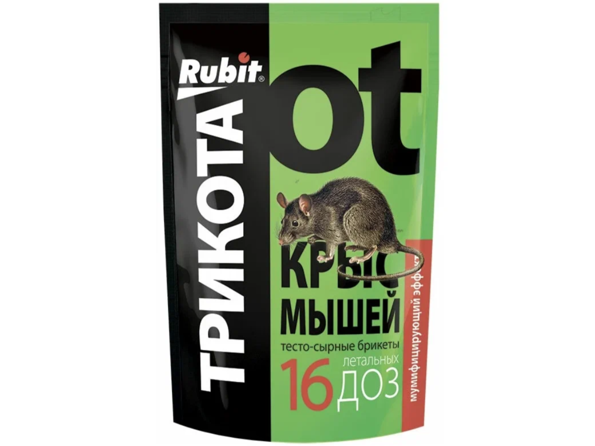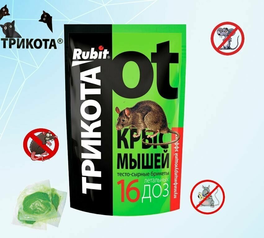 Купить Средство против грызунов крыс и мышей Rubit ТриКота тесто-сырные брикеты мумифицирующий эффект 16 доз 150г