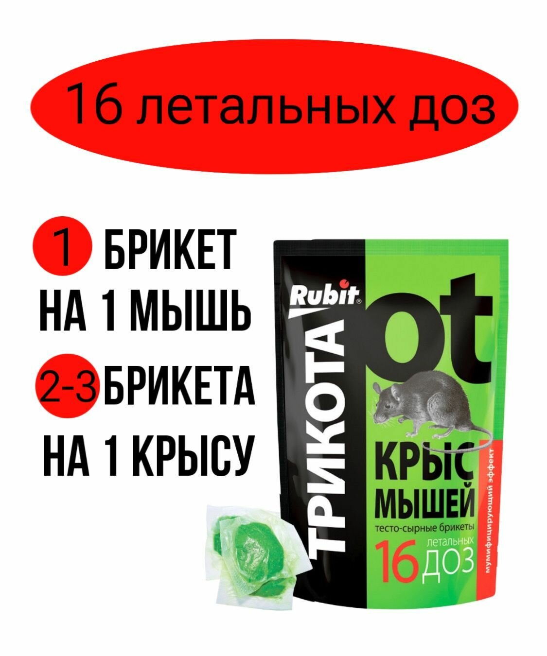 Средство против грызунов крыс и мышей Rubit ТриКота тесто-сырные брикеты мумифицирующий эффект 48 доз 3X150г