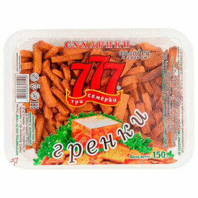 Гренки 777 ржано-пшеничные холодец с хреном лоток 150 гр