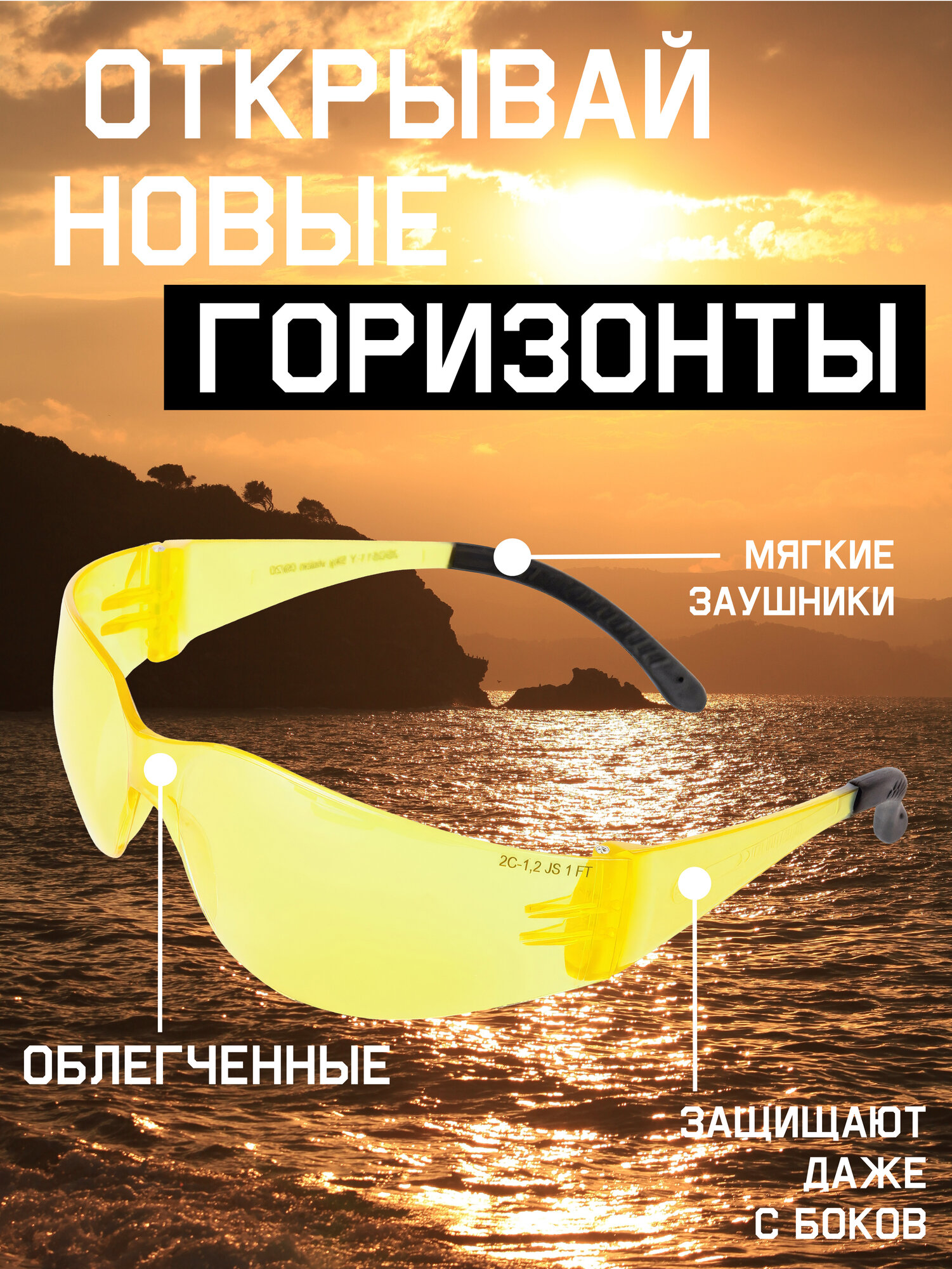 Очки защитные открытые с регулировкой дужек, янтарные линзы JSG1511-Y Jeta Safety