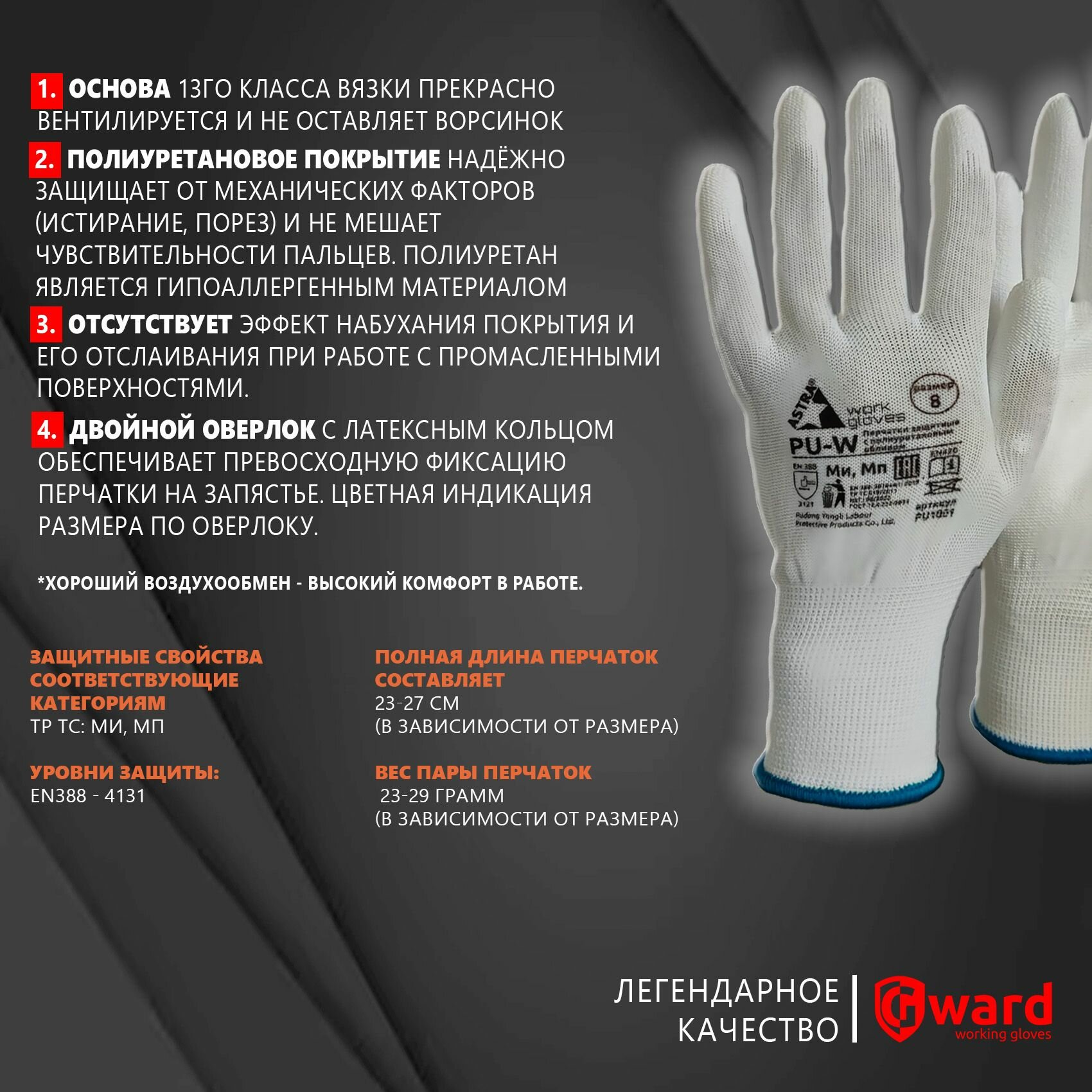 | Материал покрытия перчаток | Полиуретан |