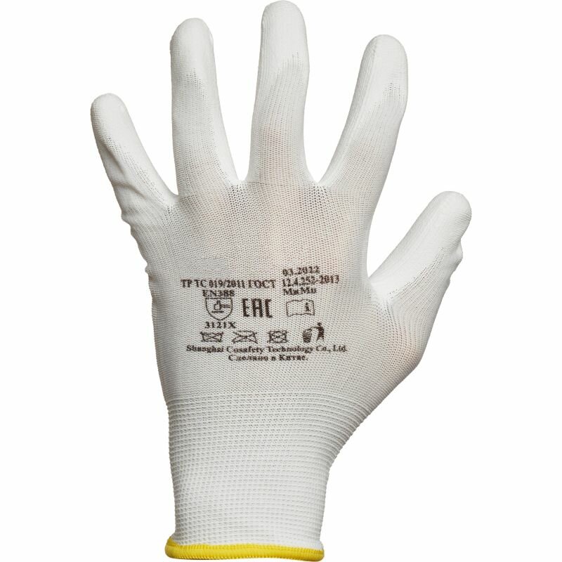Перчатки защитные нейлоновые с полиуретановым покрытием, белые размер 8, 12 пар
