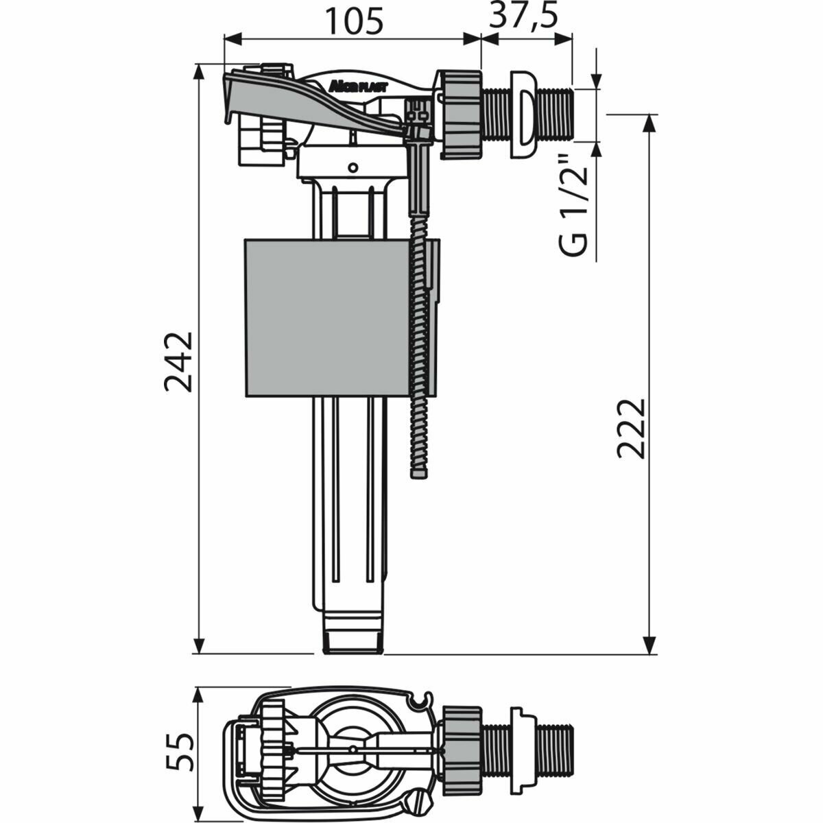 Alca Plast Впускной механизм с боковой подводкой и металлической резьбой A160-1/2" .