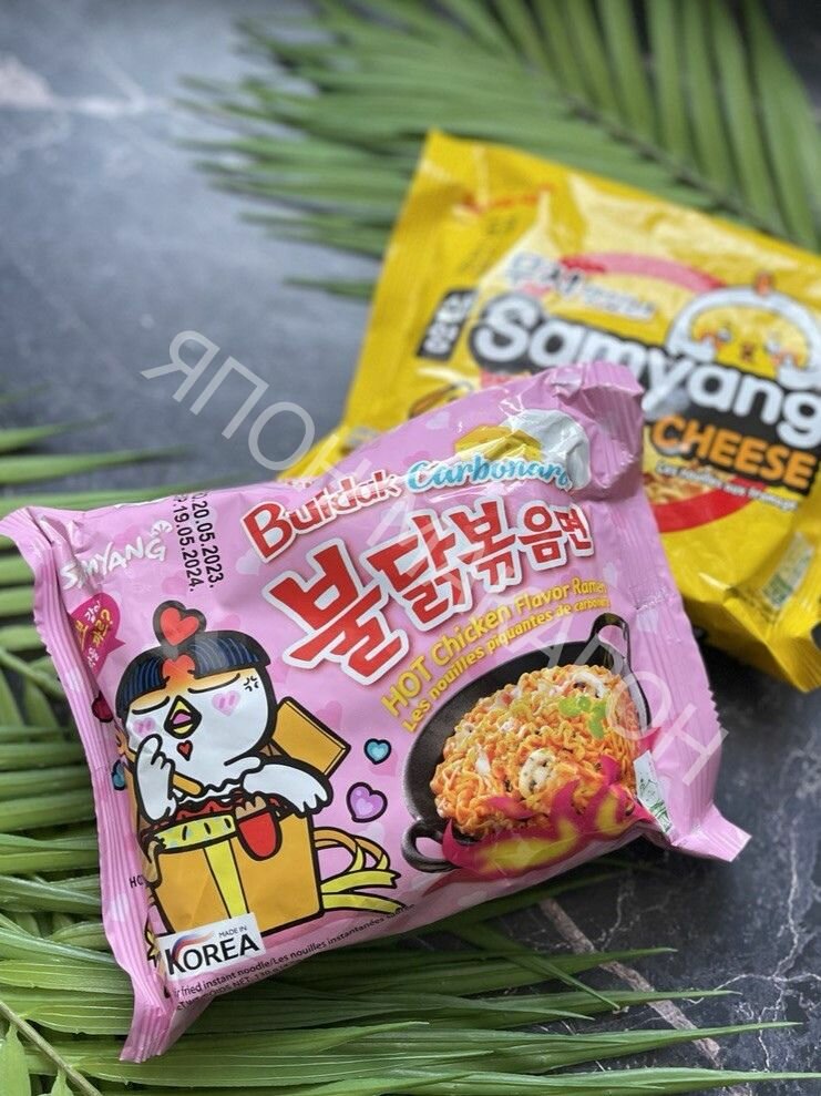Корейская лапша быстрого приготовления SAMYANG 4 сыра и Крем карбонара. Острая лапша