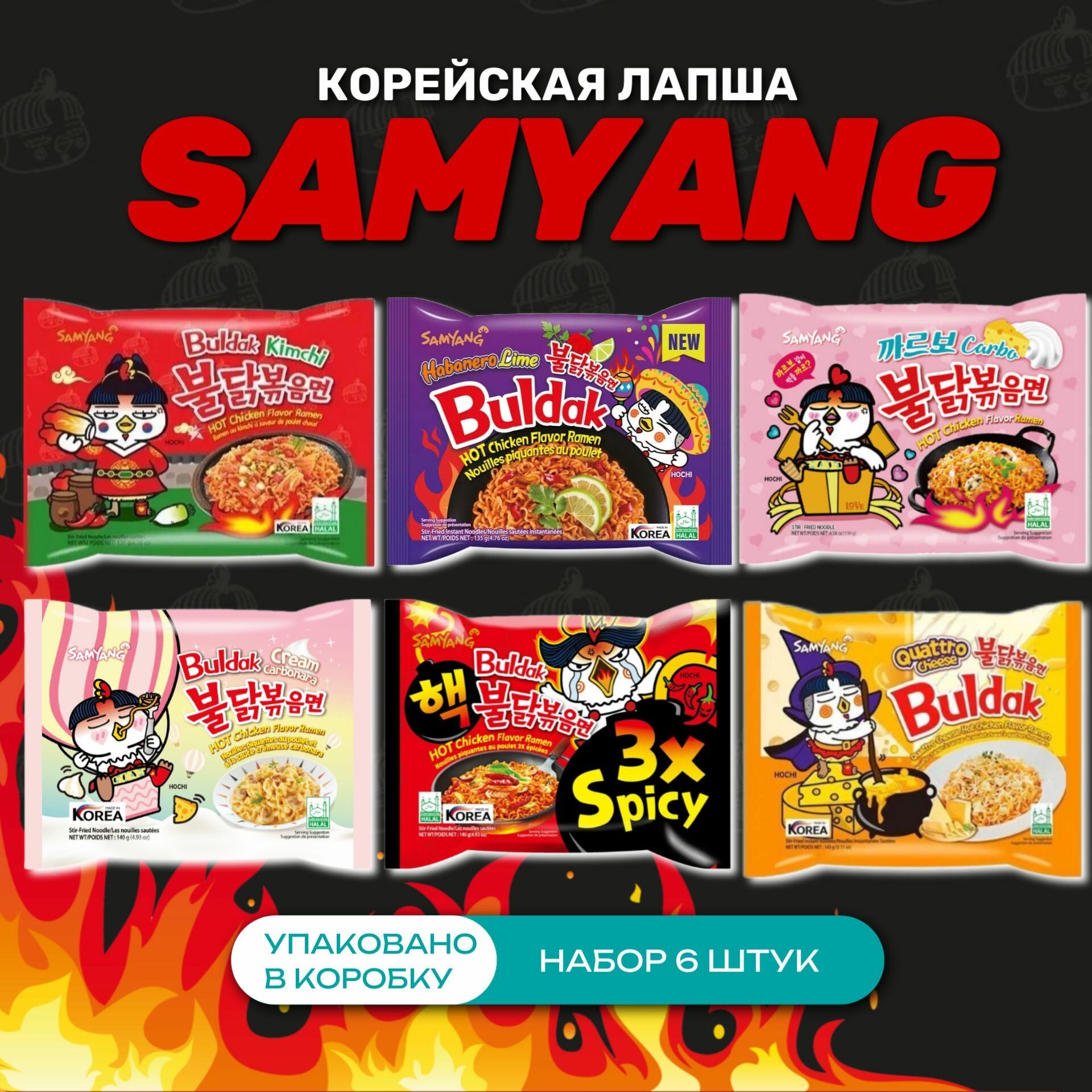 Корейская лапша быстрого приготовления SAMYANG 6 вкусов (2x spicy, Сыр, Крем карбонара, Тушеная курица, Острая с курицей, Хабанеро)