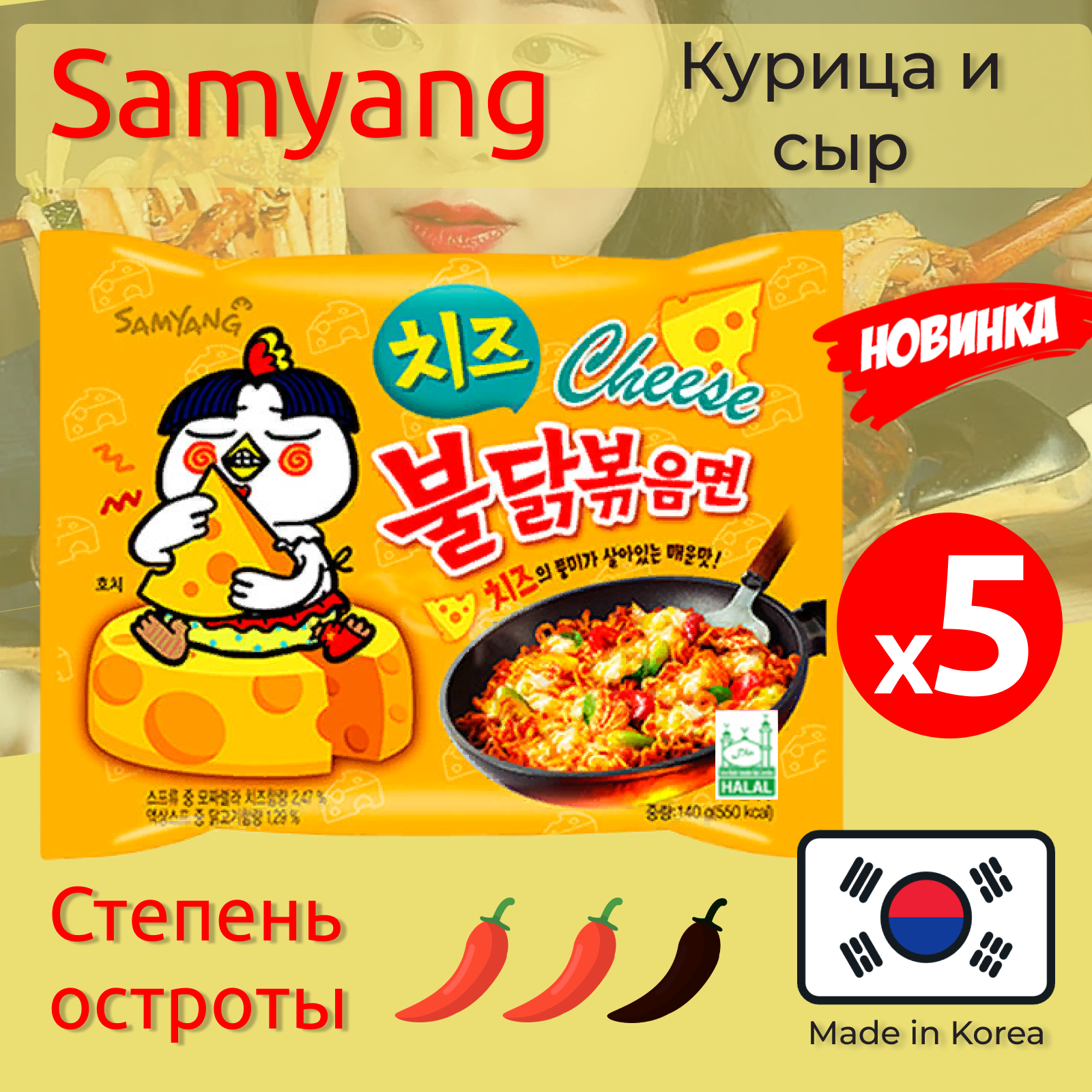 Купить Лапша б/п со вкусом очень острой курицы и сыра, Samyang, 5 шт. по 140 г.
